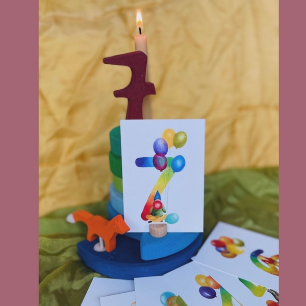 De wenskaarten met cijfer, ballonnen en kabouter is er ook in een kleine, A7 maat. (7,4x10,5 cm) Leuk voor bij een cadeautje of een traktatie in bijvoorbeeld de jaarring.