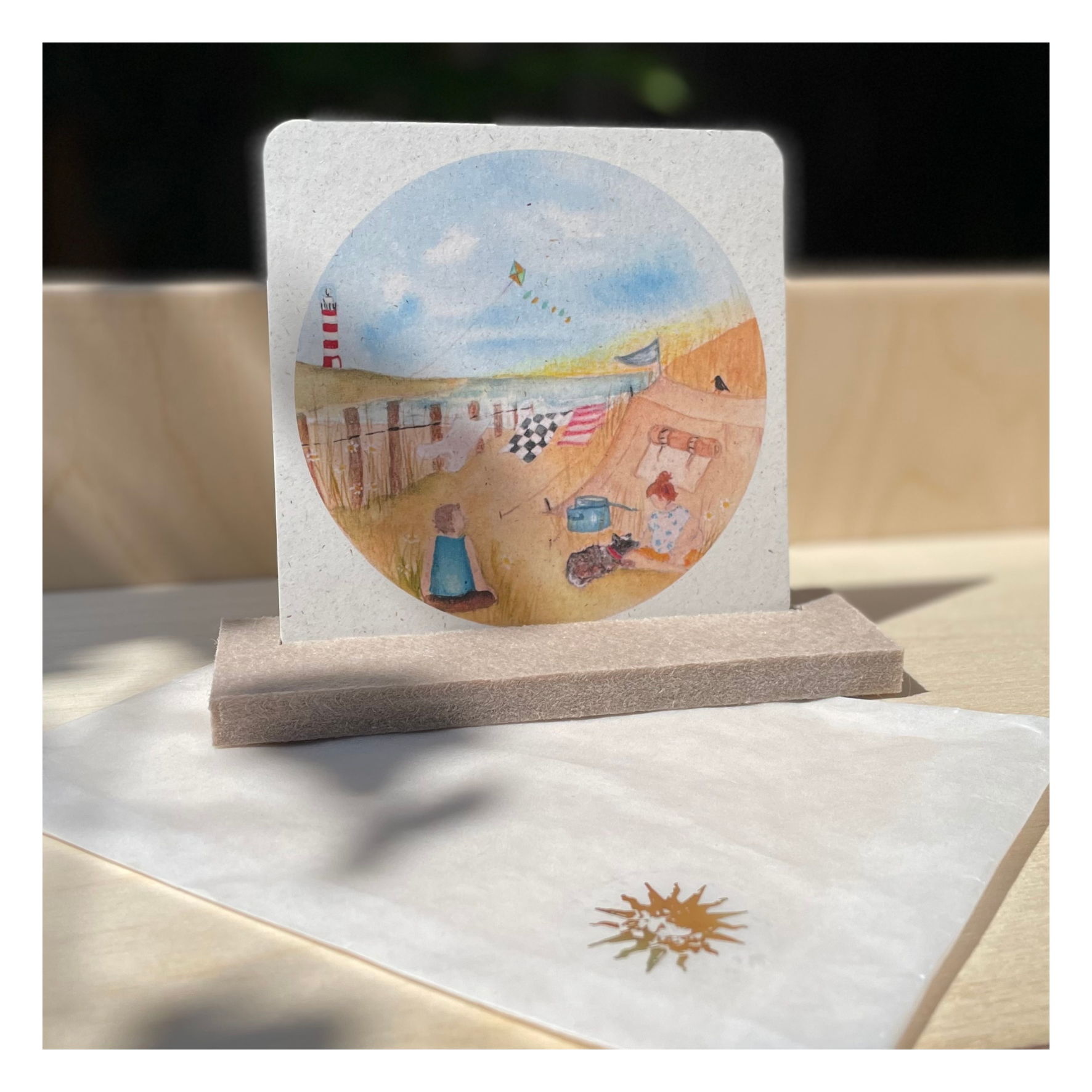 Het bijeborende kaartje is handgeschilderd en daarna gedrukt op gerecycled papier van olifantengras. Kortom; een sfeervol en duurzaam cadeautje.