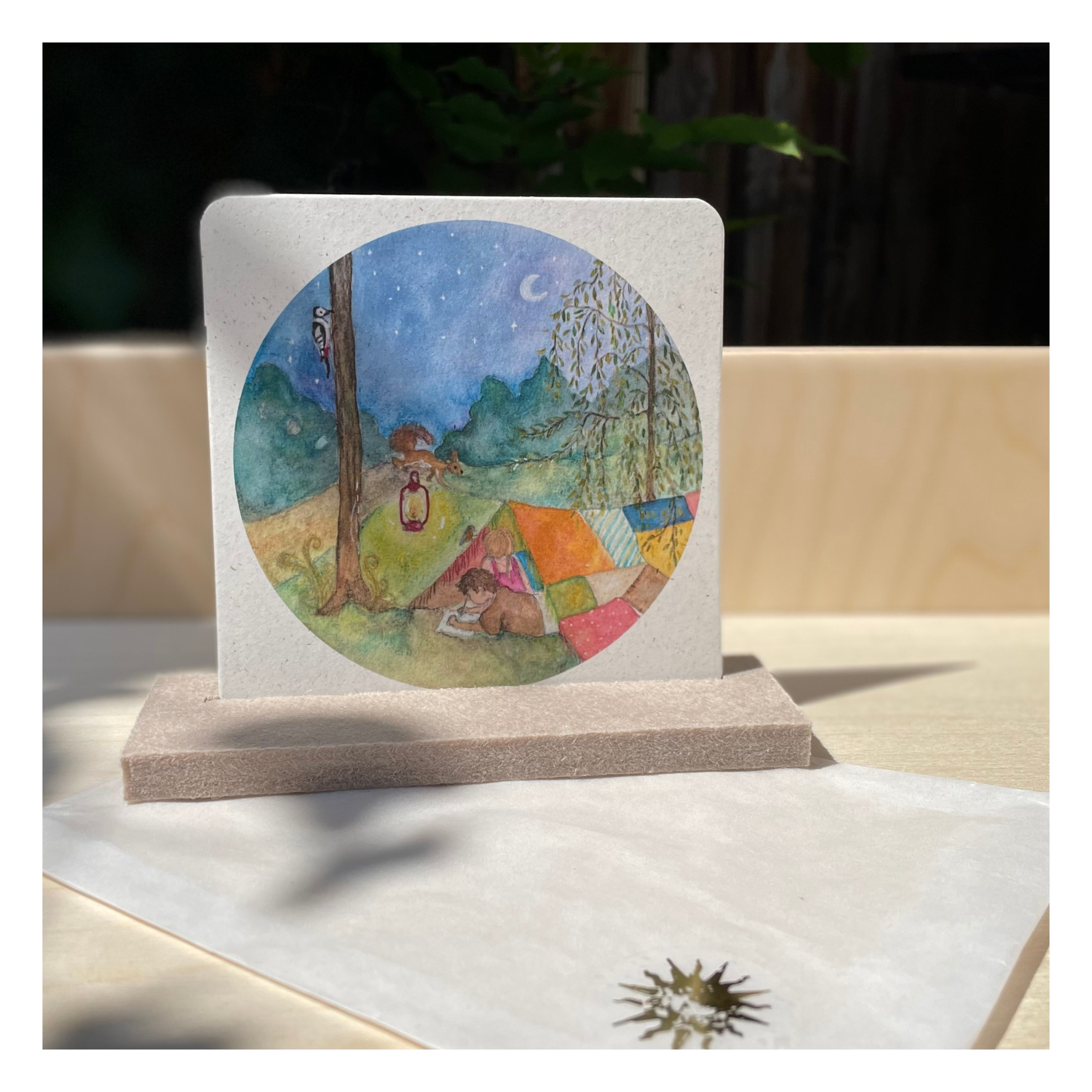 Het bijeborende kaartje is handgeschilderd en daarna gedrukt op gerecycled papier van olifantengras. Kortom; een sfeervol en duurzaam cadeautje.
