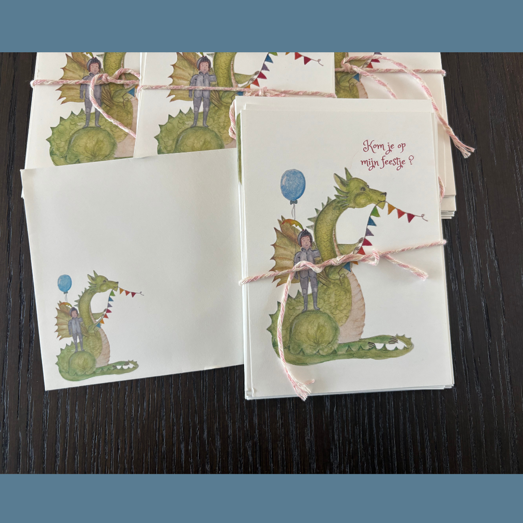 Uitnodiging Ridder en Draak (witte envelop met opdruk)