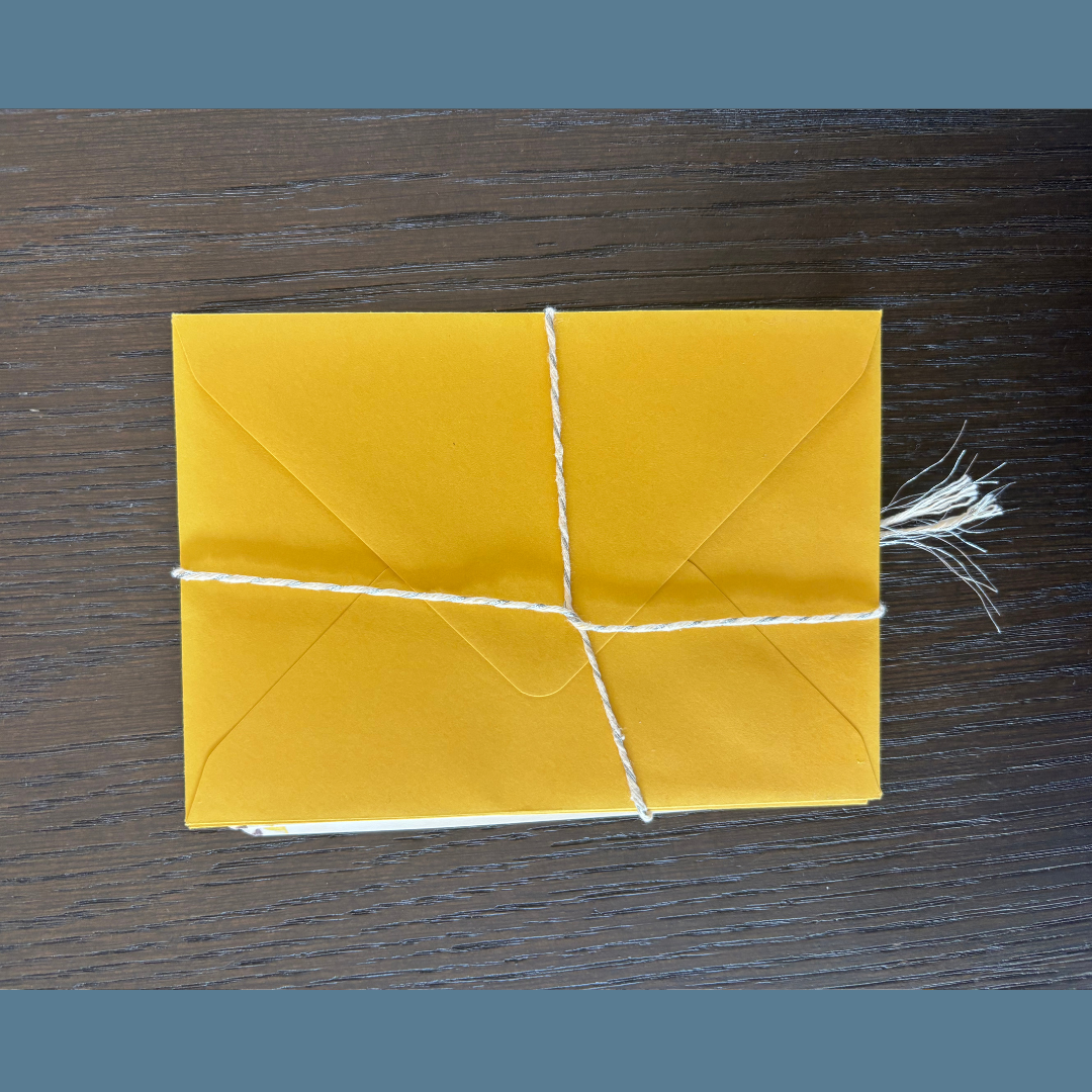 Een set van 6 enkele kaarten met aan de achterkant een invultekst. Incl. 6 gele enveloppen