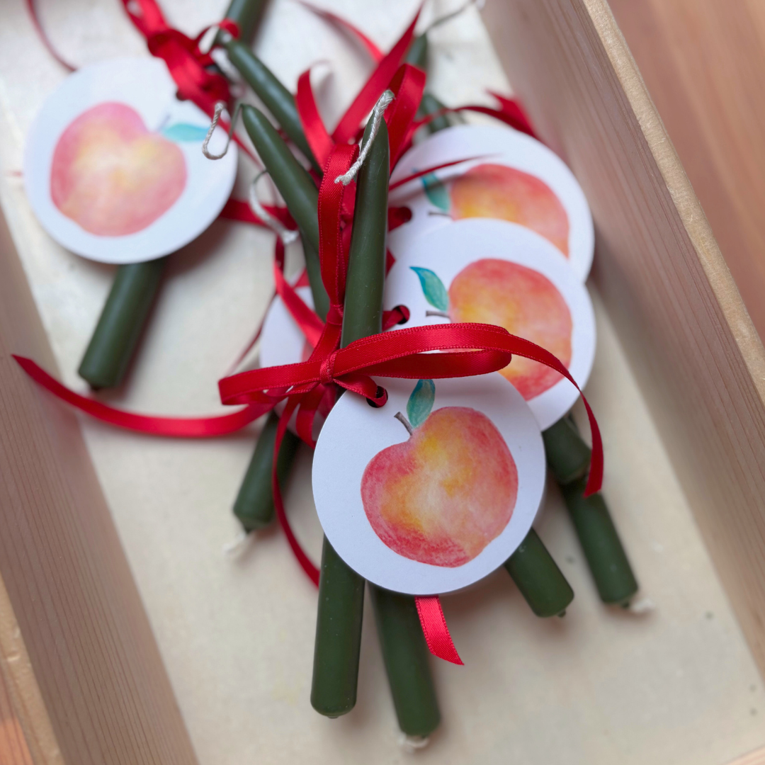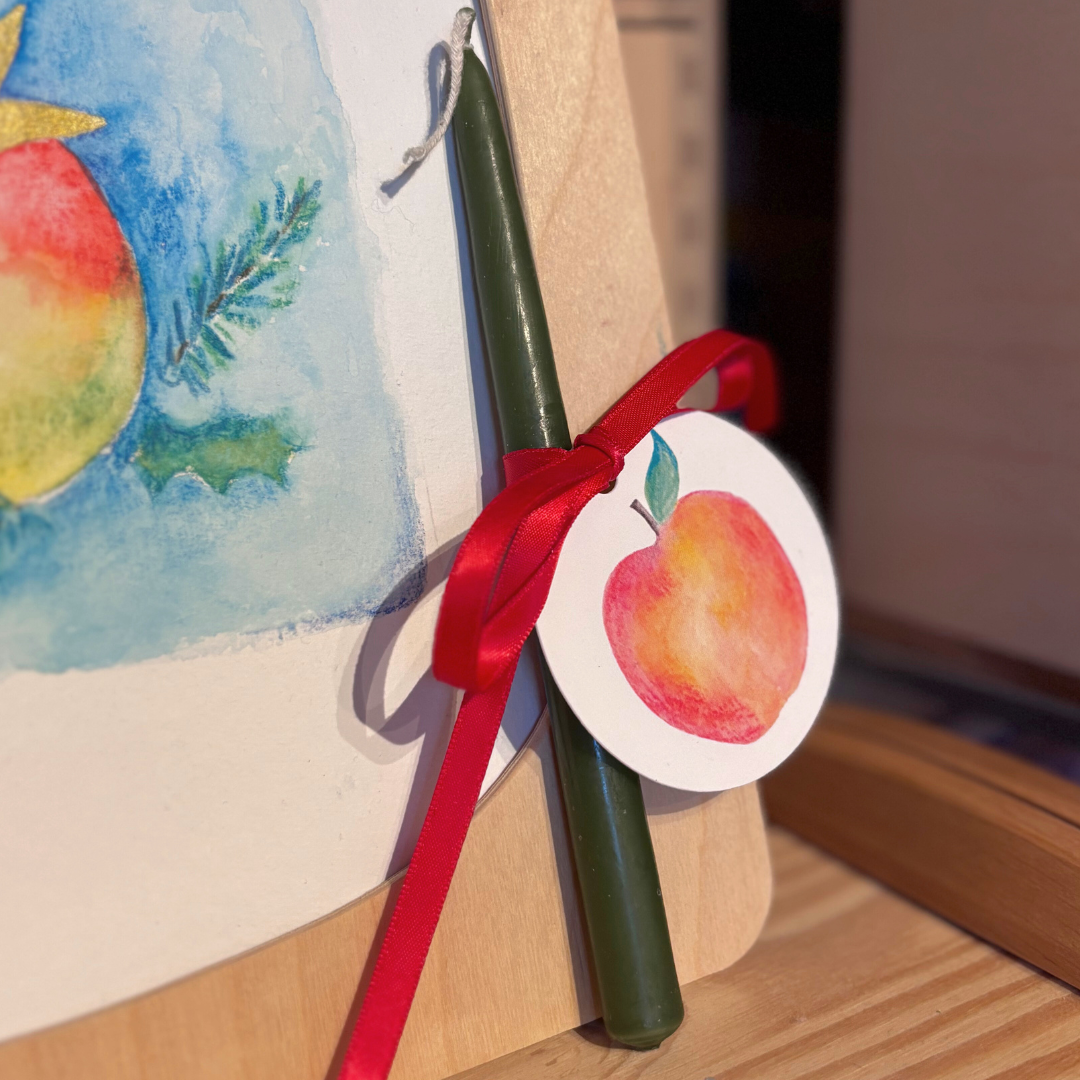 Wat je koopt: Een groen kaarsje (17 cm lang) met daaraan een rond kaartje van Biotop papier met blanco achterkant om een mooie boodschap op te schrijven.