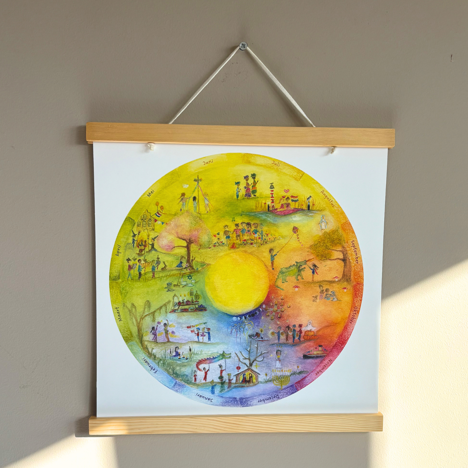 Voor Waldorf Inspiration mocht ik zo'n prachtige illustratie maken. Een jaarfeestencirkel met maar liefst symbolen en scenes van 30(!) verschillen feesten, gedenkdagen en rituelen uit vele verschillende religies en culturen. Deze illustratie is ontworpen voor de jaarfeestencursus van Waldorf Inspiration, https://everydaymommyday.com/jaarfeestencursus waar je hem ontvangt als cursus deelnemer.